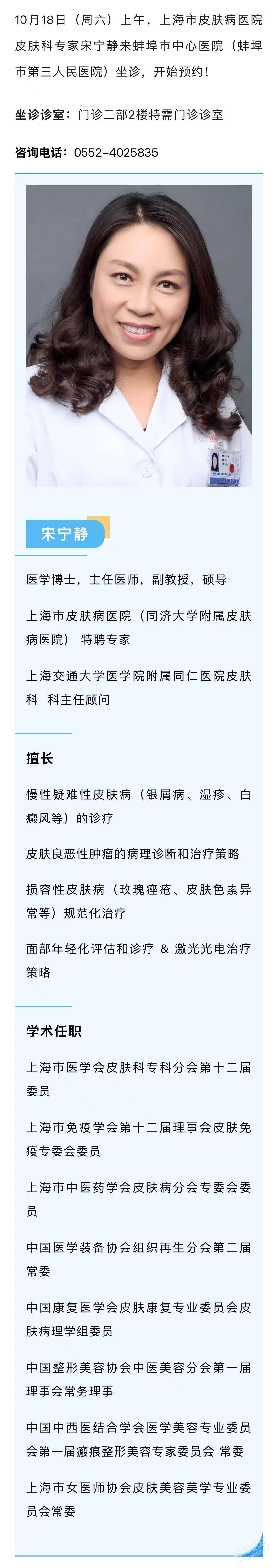 专家预约:10月18日(周六)上午,上海市皮肤病医院皮肤科专家宋宁静来院坐诊,开...