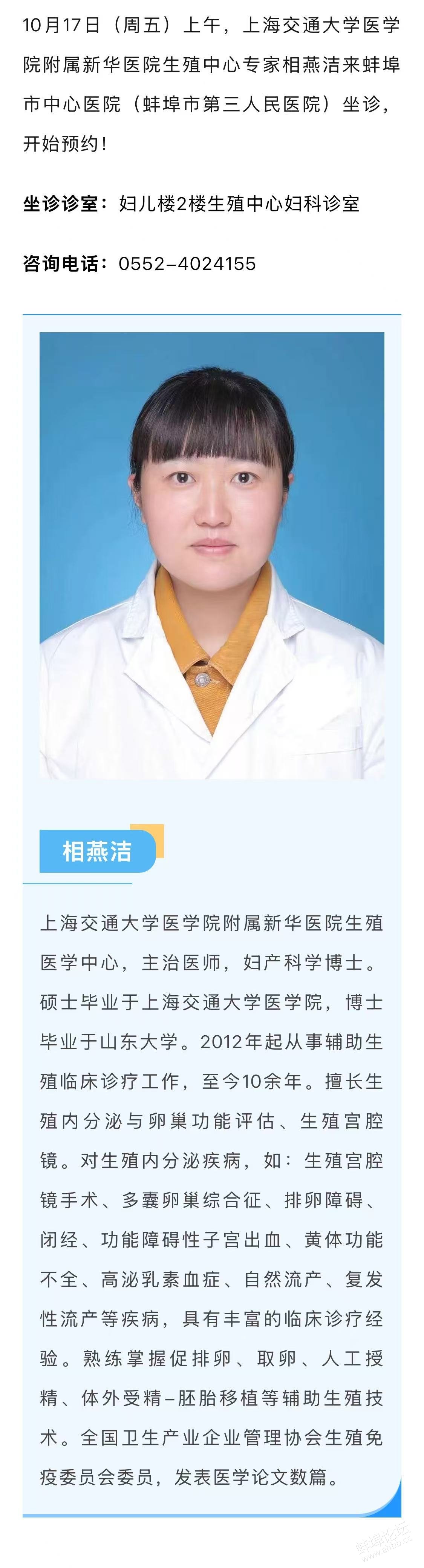 专家预约:10月17日(周五)上午,上海交通大学医学院附属新华医院生殖中心专家相...